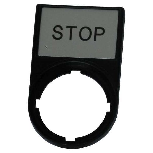 Legend Plate, Half-Round, Legend Stop, For Use With Eaton C22 and M22 Pushbuttons, Legend/Background Color Black, Material Polyester, Height 1.97 in, Width 1.3 in, Diameter 22 mm