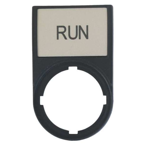 Legend Plate, Rectangular, Legend Run, For Use With Eaton C22 and M22 Pushbuttons, Legend/Background Color Black, Material Polyester, Height 1.97 in, Width 1.3 in, Diameter 22 mm