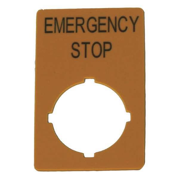 Legend Plate, Rectangular, Legend Emergency Stop, For Use With Eaton C22 and M22 Pushbuttons, Legend/Background Color Yellow, Material Polyester, Height 1 in, Width 1.3 in, Diameter 22 mm