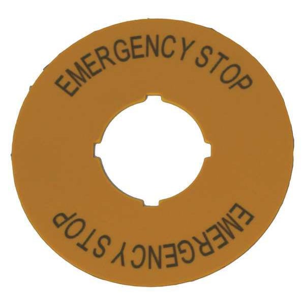 Legend Plate, Round, Legend Emergency Stop, For Use With Eaton C22 and M22 Pushbuttons, Legend/Background Color Yellow, Material Polyester, Height 2.36 in, Width 2.36 in, Diameter 60 mm