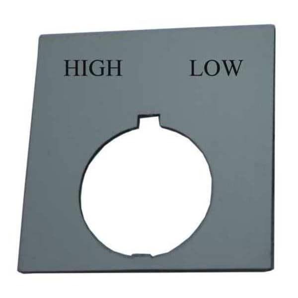 Legend Plate, Rectangular, Legend High-Low, For Use With 30.5mm Selector Switch Operators, Legend/Background Color Black, Material Plastic, Height 1.77 in, Width 1.77 in, Diameter 30 mm