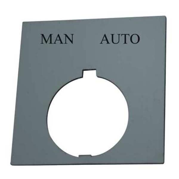 Legend Plate, Rectangular, Legend Man-Auto, For Use With 30.5mm Selector Switch Operators, Legend/Background Color Black, Material Plastic, Height 1.77 in, Width 1.77 in, Diameter 30 mm