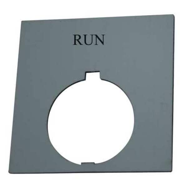 Legend Plate, Rectangular, Legend Run, For Use With 30.5mm Pushbutton Operators and Indicating Lights, Legend/Background Color White/Black and Red, Material Plastic, Height 1.77 in, Width 1.77 in, Diameter 30 mm