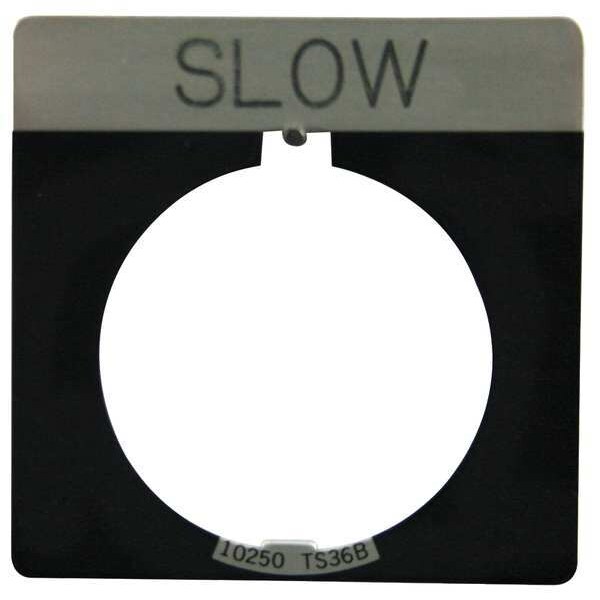 Legend Plate, Square, Legend Slow, For Use With 30.5mm Pushbutton Operators and Indicating Lights, Legend/Background Color Black, Material Aluminum, Height 1.75 in, Width 1.75 in, Diameter 30 mm
