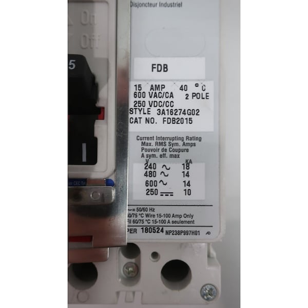 MOLDED CASE CIRCUIT BREAKER 15A 600V-AC 250V-DC 2P
