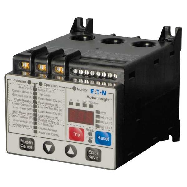 Motor Management System, Number of Normally Open Contacts 2, Number of Normally Closed Contacts 0, Number of Contacts Included 3, Operating Voltage 600V AC, Control Voltage 600V AC, Interface Optional, Compatible with Series Motor Insight, Overall Width 3.94 in, Standards CE, CSA, cULus, EN 60947-4-1, NEMA, RoHS, UL 1053, UL 508, Includes External Remote Reset Terminal, Trip Status Indicator, Overall Height 4.92 in, Overall Depth 3.94 in, Maximum Current Rating 9 A, Minimum Current Rating 1 A