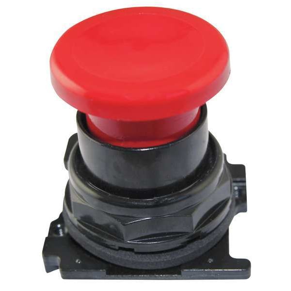 Mushroom Head Push Button, 30 mm, Momentary, Basic Material Plastic, Head Material Plastic, Bezel Material Metal, Color Red, NEMA Rating 1, 12, 3R, 4, 4X, IP Rating IP65, Standards CE, CSA, FDA 3-A, UL 505, UL Listed, Features Drainage Holes, Grounding Nibs