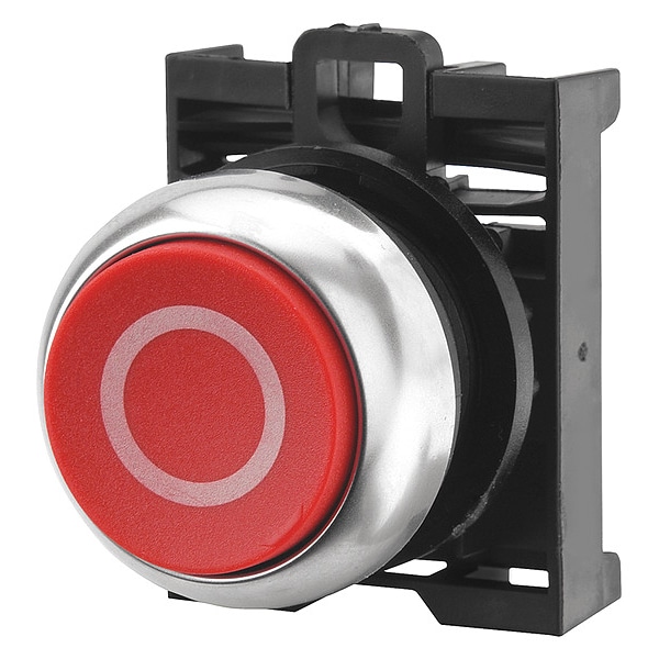 Flush Push Button, 22.5 mm, Momentary, Head Material Plastic, Bezel Material Silver, Color Red, NEMA Rating 4X, IP Rating IP67, IP69K, Legend O, Standards Bureau Veritas, CCC, CE, CSA, GOST-R, Lloyd's Register, UL Listed, Features Field Convertible From Momentary to Maintained, Includes Contact Block Mounting Adapter