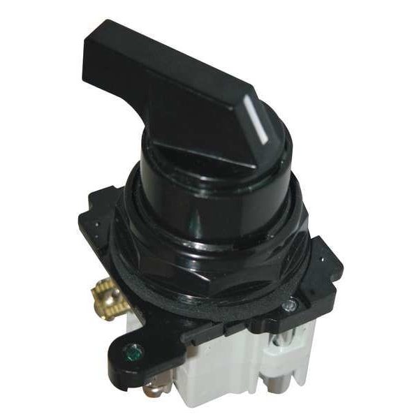 Selector Switch, 30 mm, 2 Position, Maintained/Maintained Action, 1NO/1NC Contact Form, Type of Operator Lever, Color Black, No Key Key Removal, Operator Head Material Polymer, Basic Material Metal, Bezel Material Zinc, Bezel Color Black, Contact Rating 10A @ 600V AC, NEMA Contact Rating Designation A600/P600, NEMA Rating 12, 13, 3, 3R, 4, 4X, IP Rating IP68, Cam 1, Switch Operation @ Position A XO, Switch Operation @ Position B OX, Switch Operation @ Position C No Third Position