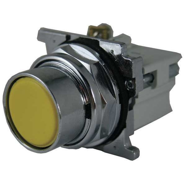 Flush Push Button Operator, 30 mm, Momentary Action, Flush Button Type of Operator, Head Material Metal, Contact Form 1NC, Bezel Chrome Plated Zinc Die Cast, Color Yellow, Contact Rating 10A @ 600V AC, Number of Operators 1, NEMA Rating 1, 12, 13, 2, 3, 3R, 4, 4X, IP Rating IP65, Legend No Legend, Standards CE, CSA, UL Listed, Terminal Connection Screw Clamp, Features Diaphragm Seals, Drainage Holes, Enclosed Silver Contacts, Grounding Nibs, Reliability Nibs, Material Metal