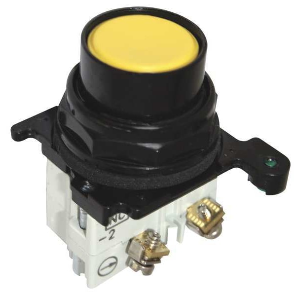 Flush Push Button Operator, 30 mm, Momentary Action, Flush Button Type of Operator, Head Material Epoxy Coated Metal, Contact Form 1NC, Bezel Epoxy Coated Metal Zinc Die Cast, Color Yellow, Contact Rating 10A @ 600V AC, Number of Operators 1, NEMA Rating 12, 13, 3, 3R, 4, 4X, IP Rating IP65, Legend No Legend, Standards CE, CSA, FDA 3-A, UL Listed, Terminal Connection Screw Clamp, Features Passed a 600 Hour Salt Spray Test, Material Metal