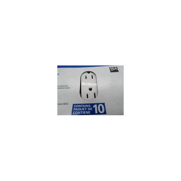 Eaton residential grade duplex receptacle, 10-pack, , #14-10 AWG, 15A, Flush, 125V, White, Brass, Impact-resistant thermoplastic, 5-15R, Two-pole, Three-wire, Screw, Thermoplastic