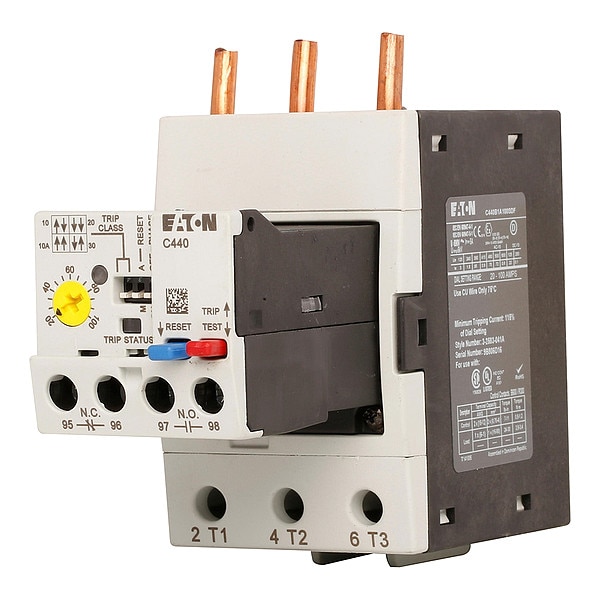 Overload Relay, Auxiliary Contact Form 2NO/2NC, Maximum Overload Relay Current Setting 100 A, Minimum Overload Relay Current Setting 20 A, Trip Class 10/20/30, Maximum Voltage Rating 690V AC, NEMA Size Not Applicable, Number of Poles 3, Number of Required Thermals Not Applicable, Reset Type Auto, Manual, Includes Thermal Units Not Applicable, Mounting Style Direct To Contactor, Terminal Connection Type Screw Clamp Terminals, Compatible with Series C25 Definite Purpose, Freedom, Relay Style NEMA