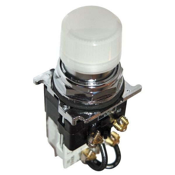 Pilot Light, Voltage 120V AC, Color White, Lamp Type LED, Shape Round, Terminal Connection Saddle Clamp, Lens Material Plastic, 30 mm, Lamp Module Type Full Voltage, Basic Material Metal, Lens Type Fresnel, Lamp Voltage 120V AC, Replacement Lamps 39R134, Body Material Metal, NEMA Rating 12, 13, 3, 3R, 4, 4X, IP Rating IP65, Includes Light Module, Operator, Standards CE, CSA, UL Listed