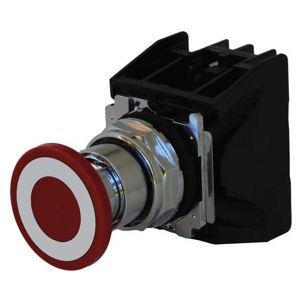 Mushroom Head Push Button, 30 mm, Maintained/Maintained Action, 40mm Mushroom Head Type of Operator, Head Material Metal, Contact Form 2NO/2NC, Bezel Chrome Plated Zinc Die Cast, Color Red, Contact Rating 10A @ 600V AC, NEMA Contact Rating Designation A600/P600, Number of Operators 1, NEMA Rating 12, 13, 3, 3R, 4, 4X, IP Rating IP65, Legend No Legend, Standards CE, CSA, FDA 3-A, UL 1604, UL 508, Terminal Connection Screw Clamp, Features Factory Sealed, Drainage Holes, Grounding Nibs