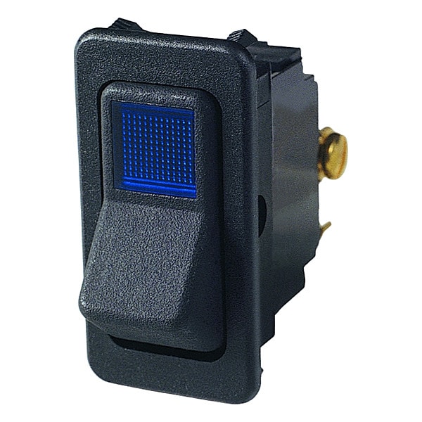 Lighted Rocker Switch, Contact Form SPST, Number of Connections 3, Switch Function Momentary Off/On, Terminals Screw, Mounting Hole 0.867 in x 1.734 in, AC Contact Rating 10 A @ 250 V, 15 A @ 125 V, DC Contact Rating 15 A @ 28 V, HP 3/4 hp, Switch Color Black, Standards cRUus, RoHS, UL E2702, IP Rating IP54, Special Features 125V AC Neon Indicator Light, Illuminated