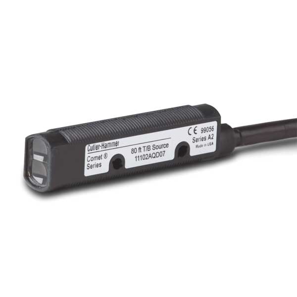 Through-Beam Photoelectric Sensor Transmitter, Bare Wire, Right Angle, Cylindrical, Selectable Light On/Dark On
