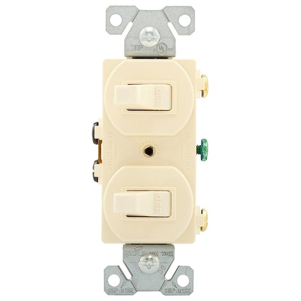 Grounding terminal screw standard Combination switch with additional switch has 120277 V rating, ideal for fluorescent lighting fixtures typical in commercial applications 0050 in thick steel mounting strap zincplated for corrosion resistance Breakoff provision for wiring both devices on same circuit or on separate circuits Terminal screws backed out and ready for wiring Side wire terminals accept up to 10 solid or stranded wire Combination slotPhillips head mounting and terminal screws Switches meet all UL 20 requirements UL Listed