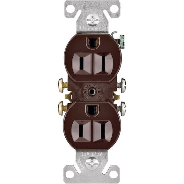 Duplex Straight Blade Receptacle, 5-15R, 15 A, 125V AC, 2 Pole, 3 Wire, Flush Mount, Grounded