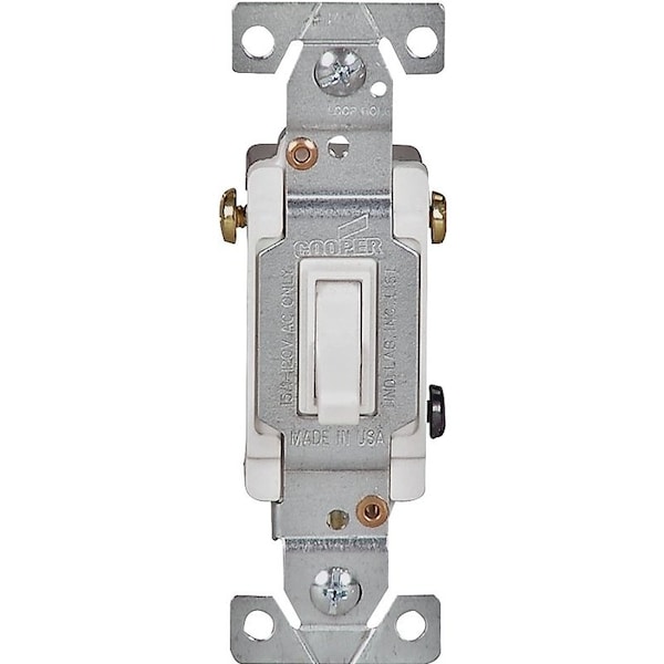 EATON Toggle Switch, 120 V, 15 A, 3 Positions, PushIn Terminal, Cam Actuator, 20 to 60 deg C, Wall Mounting, Polycarbonate Housing Material, White, Dimensions 328 in L x 131 in W x 088 in H