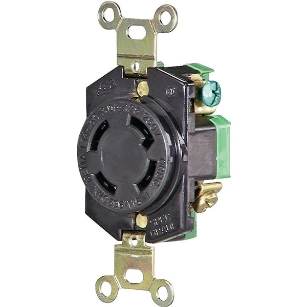 Locking Receptacle, L14-30R, 30 A, 125/250V AC, 3 Pole, Black