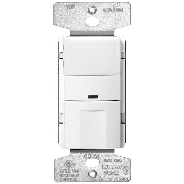 OS306U-W-K Motion Sensor Switch, 120 V, 1 -Pole, Motion Sensor, 180 deg Sensing, White