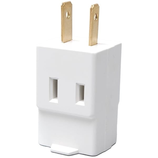 Three outlet cube taps - non-grounding molded of high impact-resistant plastic for long-term durability. Swivel adapters hug cords close to wall in tight-fitting places such as behind furniture and office equipment.