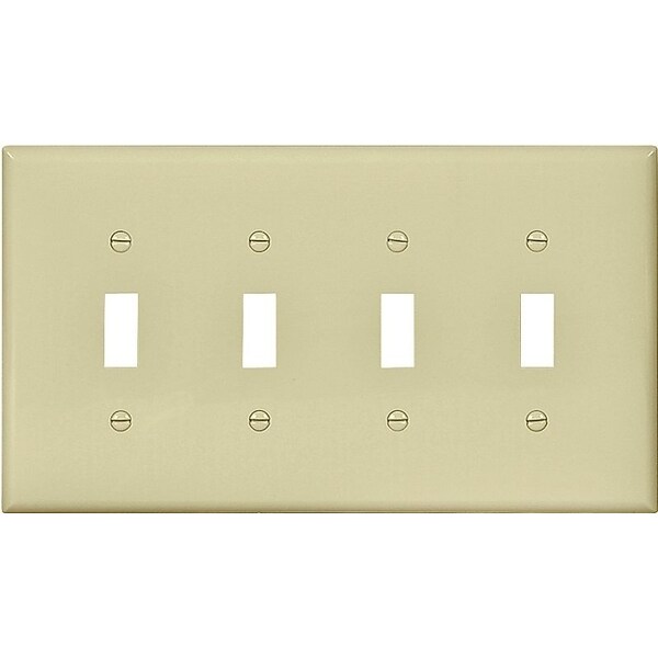 Wallplate, 478 in L, 856 in W, 4 Gang, Polycarbonate, Ivory, HighGloss