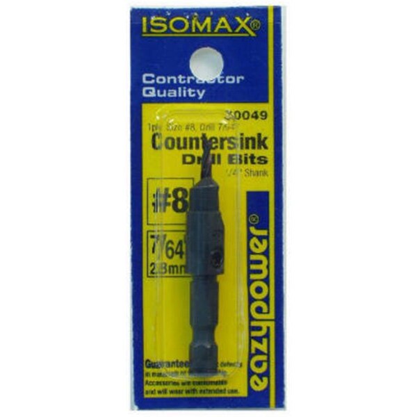 Features No. 8 Screw Countersink Drill. Size - 7/64 x 1/4 in. Shank. Dimension - 1.43 x 0.8 x 0.69 in. Item Weight - 0.15 lbs.