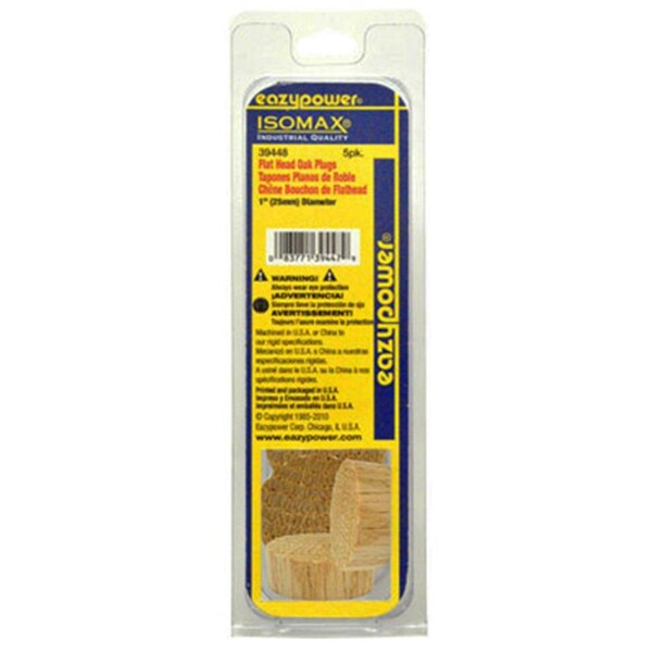 Features Flat Head Oak Plug. Designed To Be Used On Furniture As Well As Other Woodworking Applications. Size - 1 in. 5 Piece. Dimension - 3.5 x 2 x 3.5 in. Item Weight - 0.02 lbs.