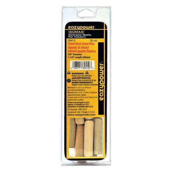 Dowel Pin,Wood,0.374in dia,1.5in L,PK30, Pin Type Fluted, Material Wood, Material Grade/Class Ungraded, Finish Plain, Pin Diameter 3/8 in, Shank Length Tolerance +/-0.0625 in, Outside Diameter Tolerance +/-0.001 in, Thread Size Not Applicable, Rockwell Hardness Not Applicable, Product Type Dowel Pin, Shank Length 1 1/2 in, System of Measurement Inch, Nominal Diameter 3/8 in, Manufacturer Location Globally Sourced, Package Quantity 30