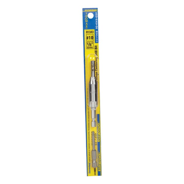 Spring loaded with hex key to adjust drilling depth. Drills perfectly centered holes in applications such as installing hinges, brackets, towel bars, cabinet hardware, drapery rods, window shades and blinds.