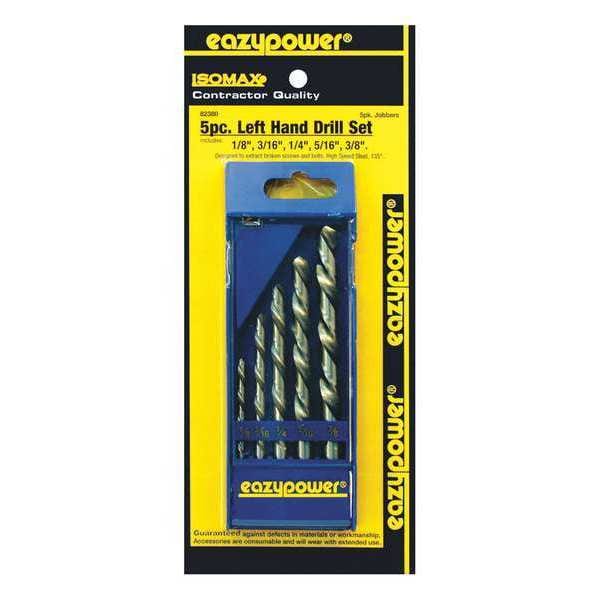 Left Hand Drill Set,1/8 In.-3/8 In.,5 pcs., Thread Direction Right Hand