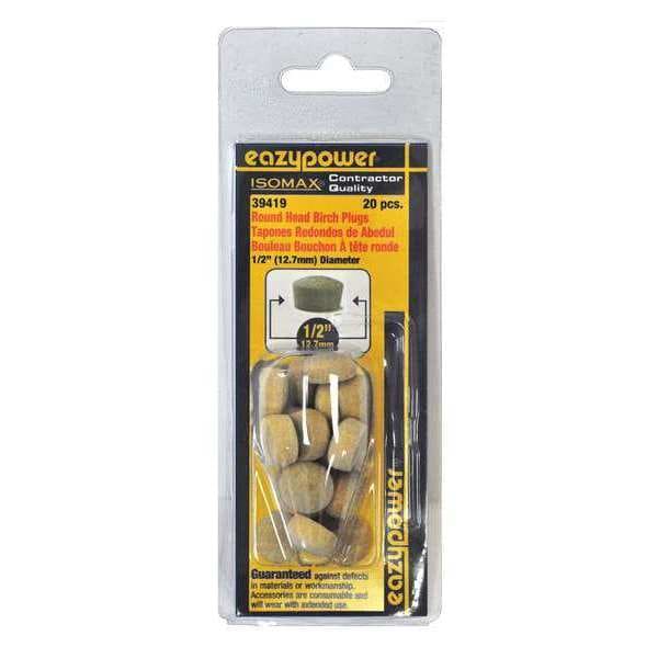 Round Head Plugs,Clamshell,1/2",pk 20