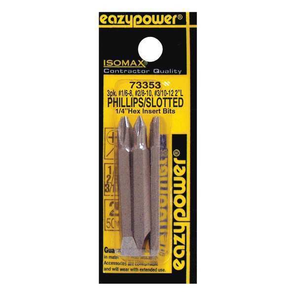 (1) Phillips #1, Slotted #6-8; (1) Phillips #2, Slotted #8-10; (1) Phillips #3, Slotted #10-12