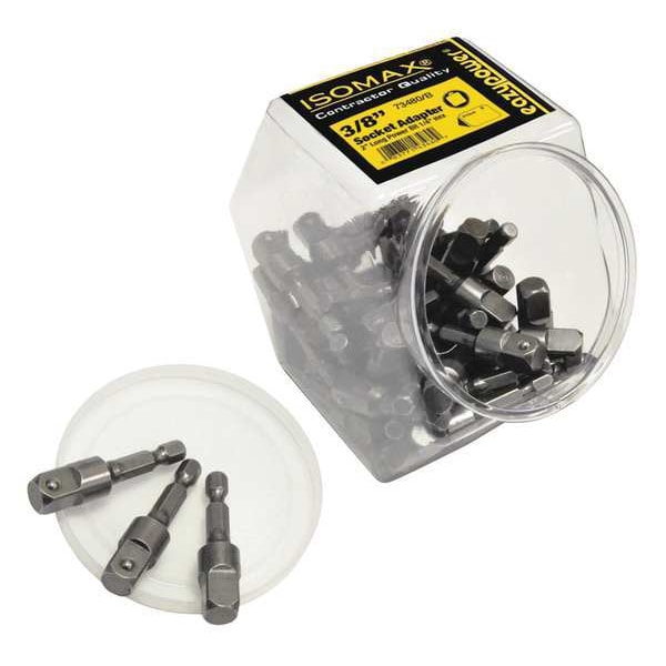 Power Socket Adapter, Input Drive Size 3/8 in, Input Drive Shape Hex, Input Drive Gender Male, Output Drive Size 3/8 in, Output Drive Shape Square, Output Drive Gender Male, Overall Length 2 in, Drive Type Power, Non-Sparking No, Insulated No, Package Quantity 50