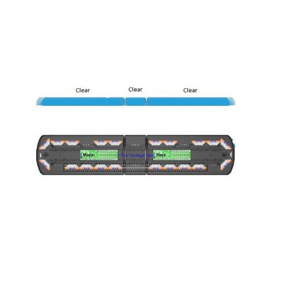 54 Inch Length x 11 Inch Width; 20-Amber/ Blue Ice Optic Dual Color LED/ 2 White Work Lamps; Clear Lens