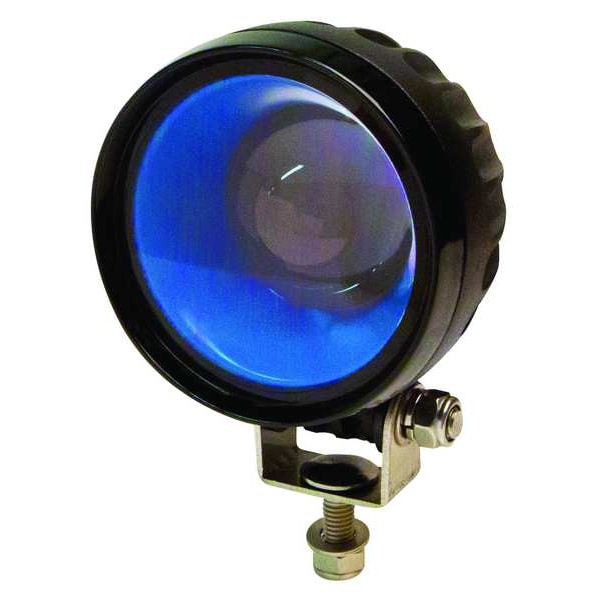 Safety Boundary Light, Housing Color Black, Housing Material Aluminum, Features Projects Blue or Red Arrow From Front or Rear of Vehicle, Shape Round, Beam Pattern Arrow, Lighting Technology LED, Mount Type Bolt, Overall Height 4 in, Maximum Brightness 300 lm, Operating Voltage 12-56V DC, Electrical Connection Pigtail, IP Rating IP67, Standards R10, Number of Bulbs 3, Compatible Vehicle Type Cranes, Forklifts, Skid Steers, Universal, Light Color Blue, Lens Color Clear