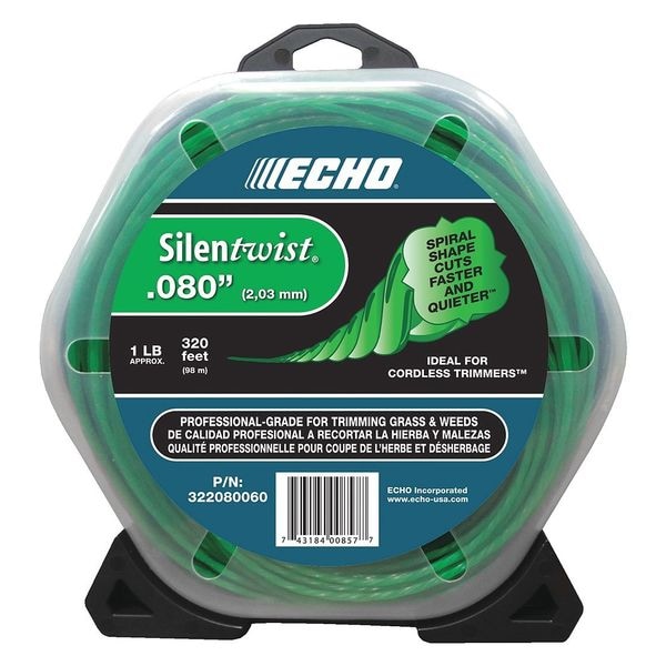String Trimmer Line, Product Type String Trimmer Line, Color Orange, Diameter 0.08 in, Material Nylon, Compatible Manufacturer Number DSRM-2100, DSRM-2600, DSRM-2600U, SRM-2620, Trimmer Line Shape Twisted, Overall Length 320 ft, Compatible Grainger Part Number SRM, Compatible Product Type All ECHO Trimmer Heads