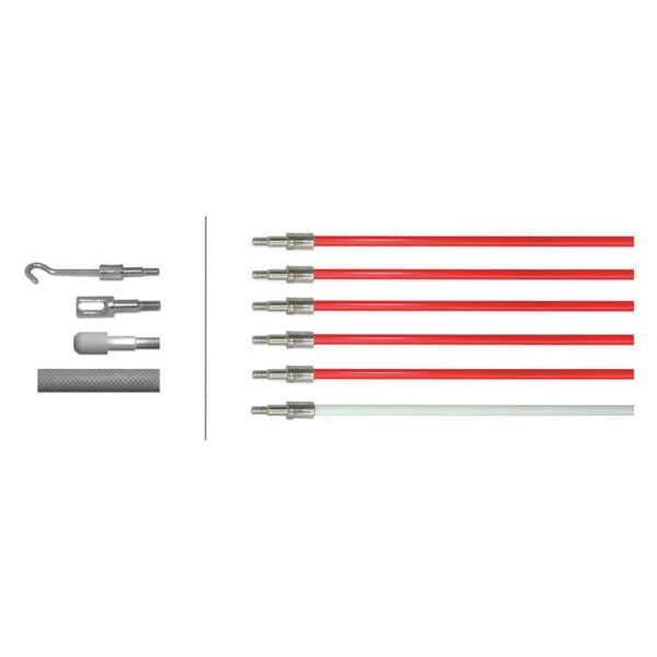 Cable Pulling & Routing, Non-Conductive Yes, Connector Material Epoxy Resin, Features Domed Bullet, Gender Adaptor, Mini-Eye, Mini-Hook, Includes (2) 5 ft Red 3/16 Sticks, 5 ft Luminescent 3/16 in Stick, 5 ft Packaging Tube, Domed Bullet, Gender Changer, Mini-Eye, Mini-Hook, Individual Rod Length 5 ft, Rod Color Red