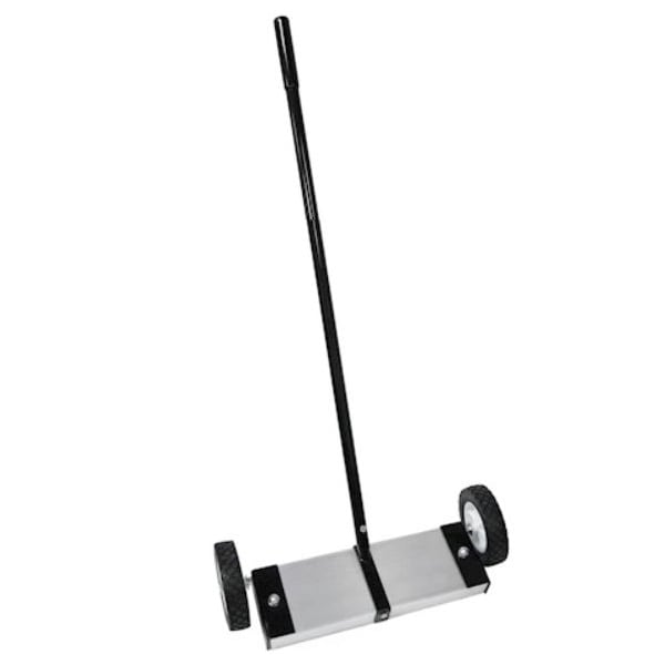 Powerful ceramic magnets are encased in a durable aluminum housing which can be cleared of collected debris with work gloves or a heavy shop towel. Easy to operate over most terrain - even in water! Sturdy one-piece handle attaches easily. Durable rubber wheels