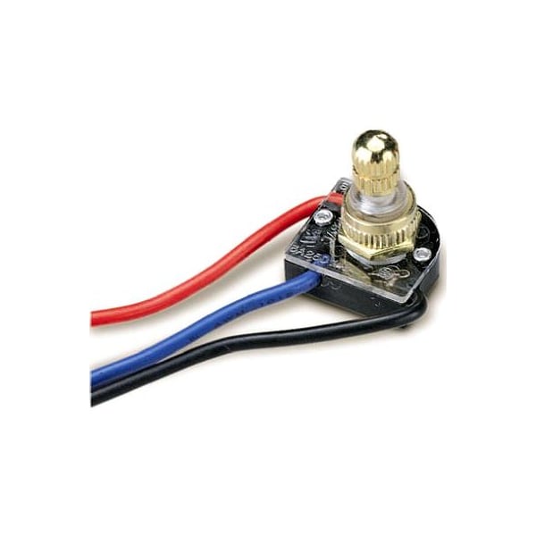 Brass Plated 3 Way Rotary Switch, Single Pole Triple Throw, OffOnOnOn, Three Position, Recommended Mounting Hole Fits 1332 Diameter, 3A125V, Carded
