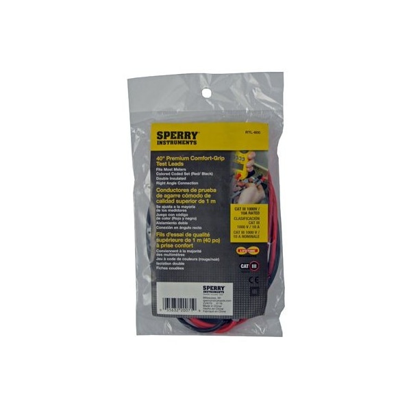 Sperry, 40, Universal Meter Replacement Lead, Tough ABS Construction, Flexible Cords For Easy Use, Universal Fit With Most Meters, CAT3 1000V, Double Insulated With Removable Caps For Safety, Slip Resistant Comfortable Handling