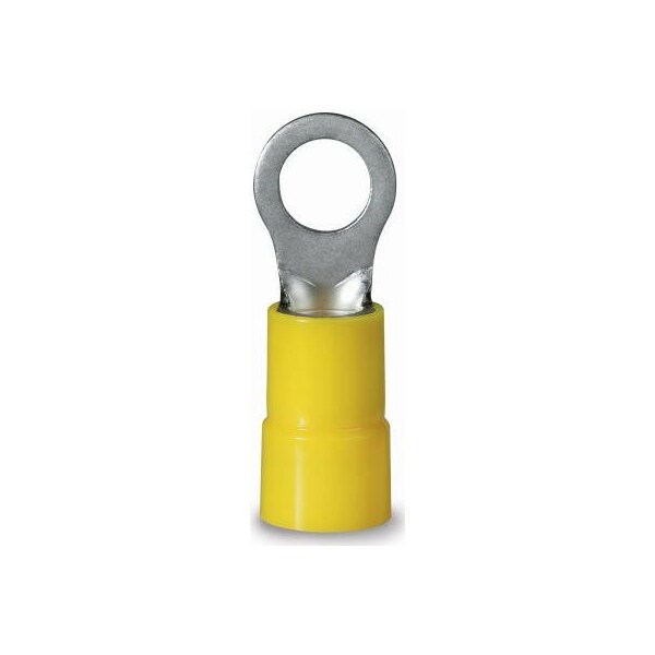 4 Pack, Ring Terminal, Vinyl Insulated Barrel, Solderless, 38 Stud, 14 AWG, Rated At 600V Maximum, Temperature Rating 167 Degrees Fahrenheit, 75 Degrees Celsius, UL Approved