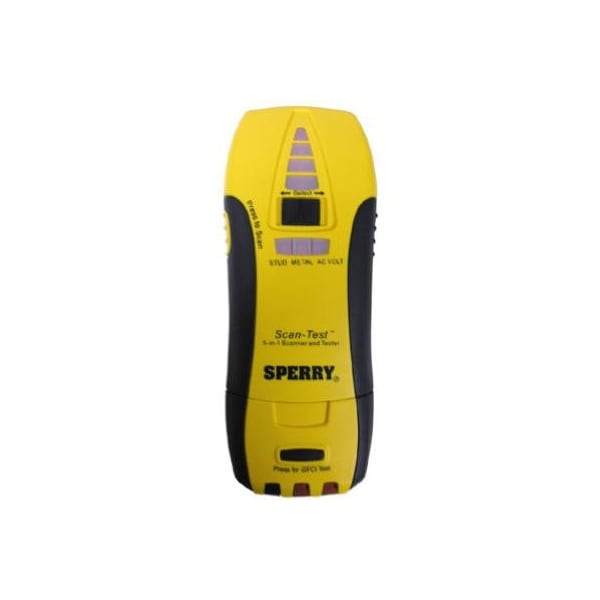 Sperry Instruments, Scantest , Detects Wood Or Metal Studs, Metal Objects AC Voltage, 50600 VAC, Tests 3 Wire Outlets GFCI Protected Circuits, Snap Together Design For Compact Storage Convenience, Soft Grip, Contoured Design, Hi Impact ABS Housing, Audible Visual Indication, Battery Operated, Carded