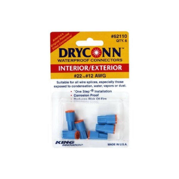 6 Pack, Aqua BlueOrange, Safety Sealed Waterproof Wire Connector, 300600V, WatertightRaintight, Use In Irrigation, Trailers Boats, UL Listed, CSA Certified, Carded