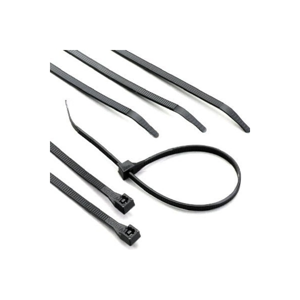 8 Pack, 14, Black Cable Tie, Nylon, Ultra Violet Resistant, 75 LB Tensile Strength, 1 Piece, Self Locking, Bagged