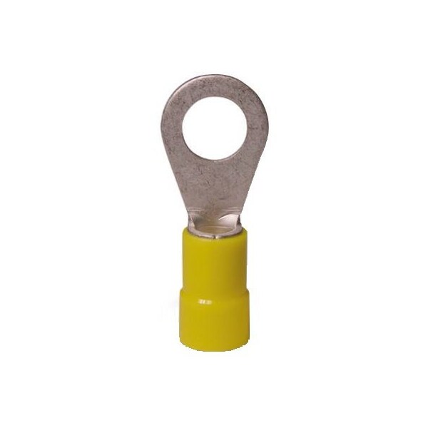 Ring Terminal, 1/4 in Stud Size, 10 AWG, 600 V, Yellow, Crimp Termination Only