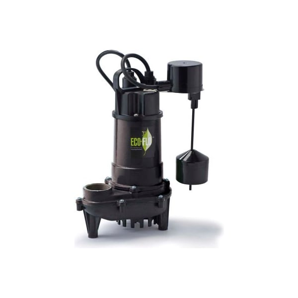 Eco-flo ecd50v submersible sump pump, cast iron, 1/2 hp, 4400 gph heavy duty cast iron construction for strength & durability features: available in wide angle (requires 18" minimum diameter wide sump basin) or vertical (for sumps less than 11" in diameter) automatic on/off switches continuous duty, efficient 115v psc (permanent split capacitor) motor for lower carbon footprint; higher efficiency using less energy to operate 8' power cord on ecd30/33/50 and 10' power cord on ecd75 submersible for quiet operation 1-1/2" fnpt discharge (ecd75 2" fnpt discharge, includes 2" mnpt x 1-1/2" fnpt adapter) non-clogging vortex, thermoplastic impeller passes 1/2" solids