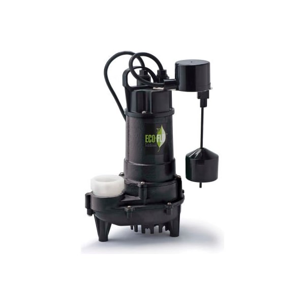 Eco-flo ecd75v submersible sump pump, cast iron, 3/4 hp, 6000 gph heavy duty cast iron construction for strength & durability features: available in wide angle (requires 18" minimum diameter wide sump basin) or vertical (for sumps less than 11" in diameter) automatic on/off switches continuous duty, efficient 115v psc (permanent split capacitor) motor for lower carbon footprint; higher efficiency using less energy to operate 8' power cord on ecd30/33/50 and 10' power cord on ecd75 submersible for quiet operation 1-1/2" fnpt discharge (ecd75 2" fnpt discharge, includes 2" mnpt x 1-1/2" fnpt adapter) non-clogging vortex, thermoplastic impeller passes 1/2" solids